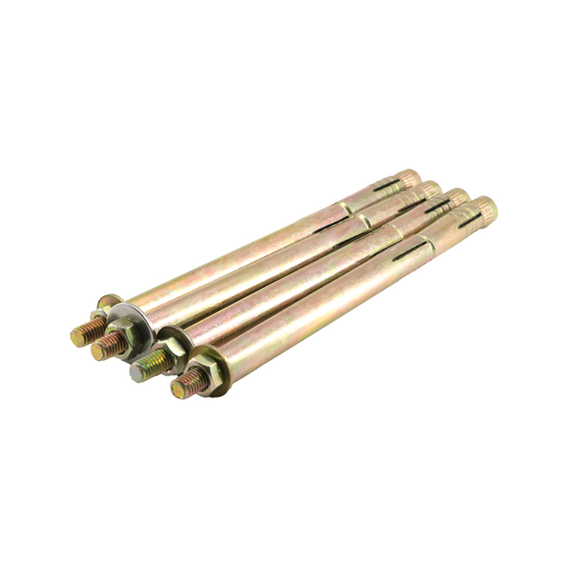 Altıgen Somunlu Çift Manşonlu Ankraj: Kolay sıkma için altıgen somunlu çift manşonlu tasarıma sahiptir. Çinko kaplı karbon çeliği gibi metal malzemelerden üretilen bu ankraj, iyi korozyon direnci ve yüksek mukavemet sunar. Çift manşonlu yapısı, taban malzemelerine sabitlendiğinde gelişmiş stabilite ve tutma gücü sağlar. Bu ankraj, çeşitli bileşenlerin sabitlenmesinde güvenilirdir ve inşaatta yapısal elemanları betona veya duvara sabitlemek, endüstriyel ortamlarda ağır makine montajı yapmak ve altyapı projelerinde yapıları güçlendirmek için yaygın olarak kullanılır ve sağlam ve dayanıklı bir bağlantı sağlar.